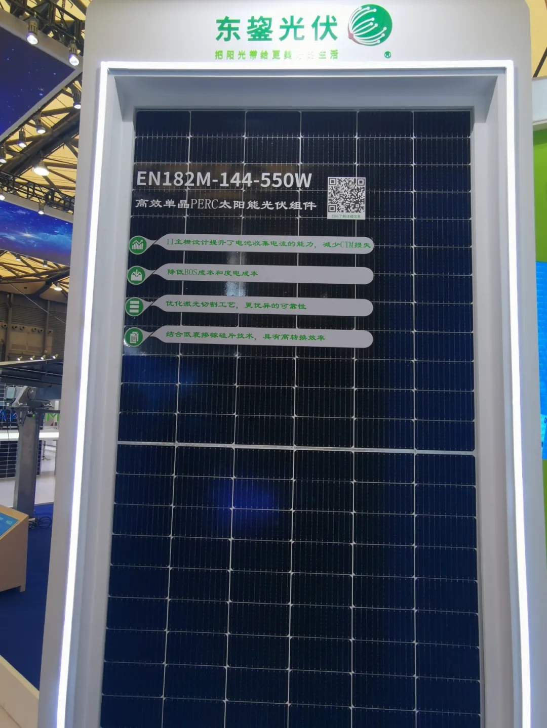 At this exhibition, Econess Energy launched 182 large silicon solar module products, using stacked half panels and 11BB multi grid technology to reduce current shielding area, reflect more light onto the surface of the battery, improve module power, and reduce BOS and kWh costs. The increase in the number of gates shortens the current transmission distance, reduces resistance loss, and improves the conversion efficiency of the battery. At the same time, it also reduces the impact of gate breakage and hidden cracks on component performance, reducing the hot spot temperature by 10-20 ℃, greatly reducing the risk of hot spots.