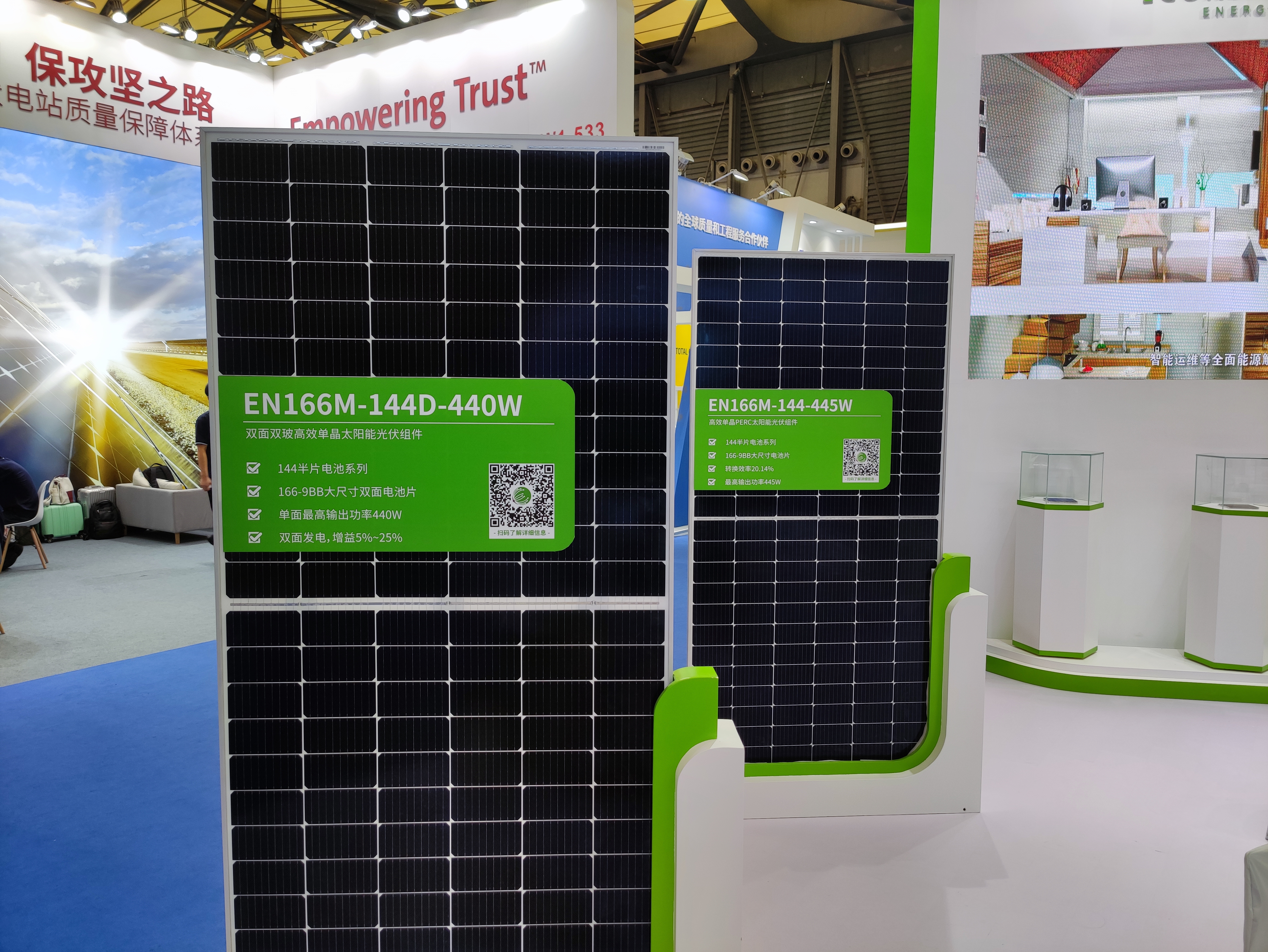 東鋆光伏多年來一直注重研發(fā)創(chuàng)新,此次攜多款新品光伏組件前來參展,受到了觀眾的廣泛關(guān)注,許多潛在客戶提出了合作意向。其中,高效雙面雙玻組件更是憑借其創(chuàng)新性與耐用性在“SNEC 2020十大亮點”評選中脫穎而出,獲得“兆瓦級翡翠獎”殊榮。