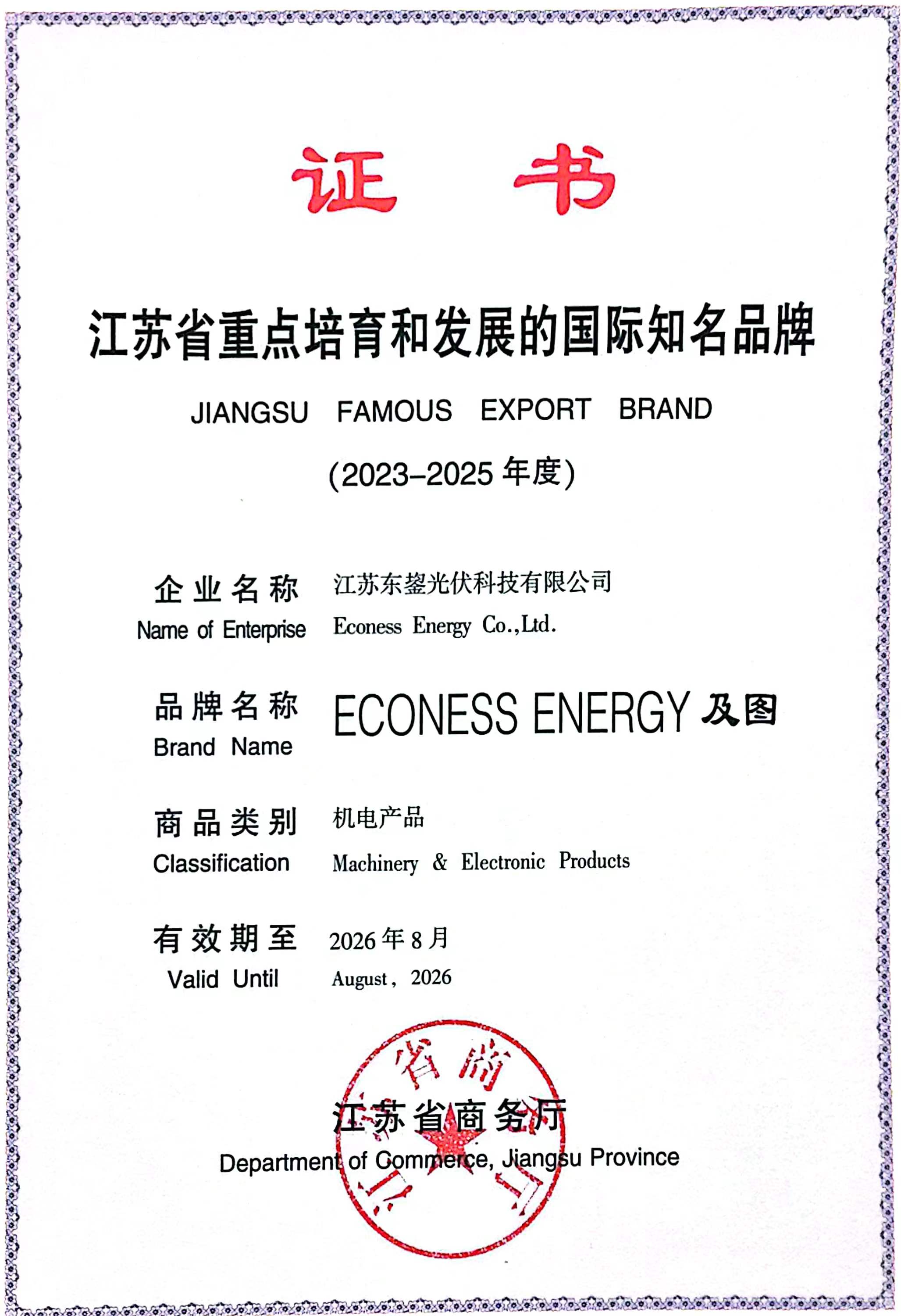 為了貫徹落實國家和省關于推進外貿(mào)高質(zhì)量發(fā)展、持之以恒培育國際知名品牌,推進跨進電商企業(yè)品牌化發(fā)展,江蘇省商務廳開展江蘇省重點培育和發(fā)展的國際知名品牌評選,東鋆光伏成功入選,這不僅僅是對過去努力的肯定,更是對未來發(fā)展的期望和鼓勵。東鋆光伏將不斷擴大自主品牌產(chǎn)品出口,持續(xù)提升產(chǎn)品附加值,進一步增強品牌的國際競爭力和影響力,成為推動江蘇外貿(mào)高質(zhì)量發(fā)展的中堅力量。